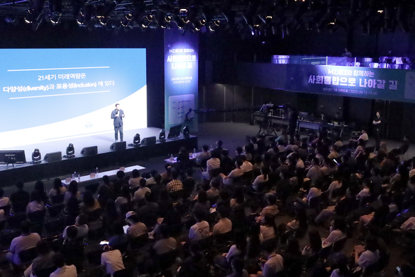 ▲ 「민주주의 연대 포럼」을 찾은 청중들에게 김경일 교수가 왜 다양성과 포용성이 미래 역량인지 설명하고 있다.설명한 내용을 증명하기 위해 김 교수는 실제 사례를 소개했는데 경기도 외곽에 있는 어느 기업은 인력난을 해결하기 위해 55세 전업주부들을 대상으로 1년 동안 속성으로 전문대학 2년 과정에 해당하는 교육을 진행했는데, 교육을 받은 주부들 중 70% 이상이 성공적으로 노동시장에 투입됐다. 이 결과는 ‘경단녀(경력이 단절된 여성)’라는 단어가 사라진 이유 중 하나이기도 하다. 또 김 교수는 영화 ‘인턴’을 예로 들며 “70세 신입사원과 30세 리더가 함께 일하는 회사는 이제 미래가 아닌 현재이며 이런 사회에선 다양한 사람과 공존할 수 있는 역량이 생존을 좌우한다.”라고 강조했다. 여기에서 말하는 역량은 바로 다양성과 포용성이다.